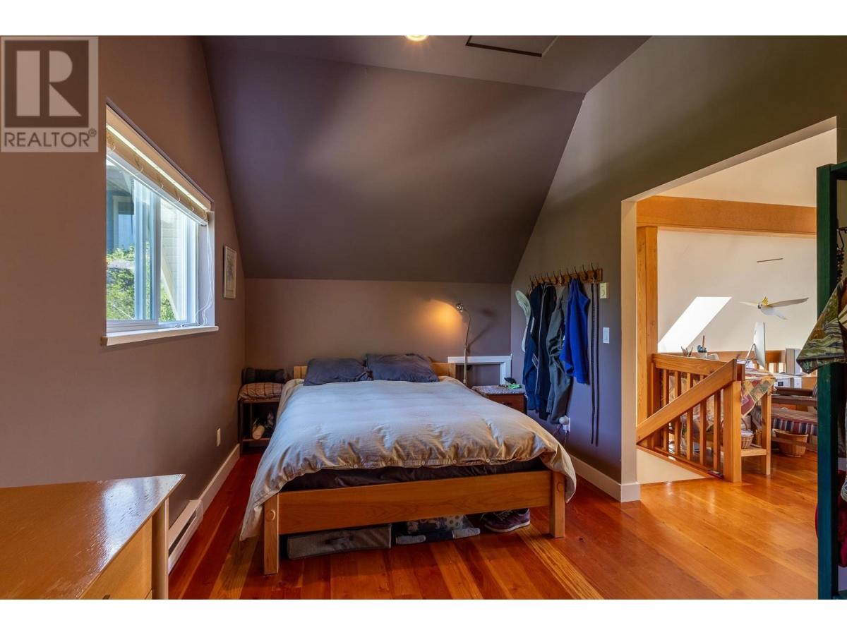 Stylish West Coast home with small ocean view on a sunny, private half-acre. Surrounded by established perennials and mature trees, this property offers a calming and positive atmosphere. The interior is bright and cozy, with hardwood floors, skylights, and a propane fireplace to add comfort and charm. Wood beams and accents give the interior a warm west coast vibe. Enjoy morning coffee on the sunny front deck and dinner on the spacious back patio, perfect for entertaining. Ideal property for those who value design, nature, and a relaxed indoor-outdoor lifestyle. Just minutes to the ocean and trails, in a friendly, connected community.
